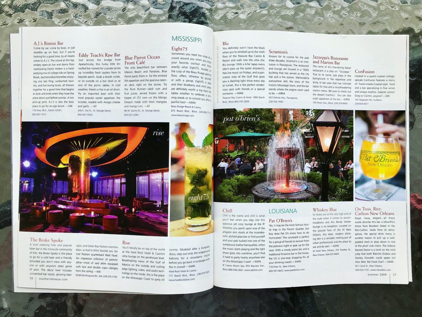 Our epicurean excursion made me think of the Southern Breeze magazine Summer 2009 issue I designed highlighting the Best Bars of the Gulf Coast, along with another feature titled Southern Brews covering beer festivals along the Gulf. It was an absolutely fun issue to design, and I enjoyed every minute of it!