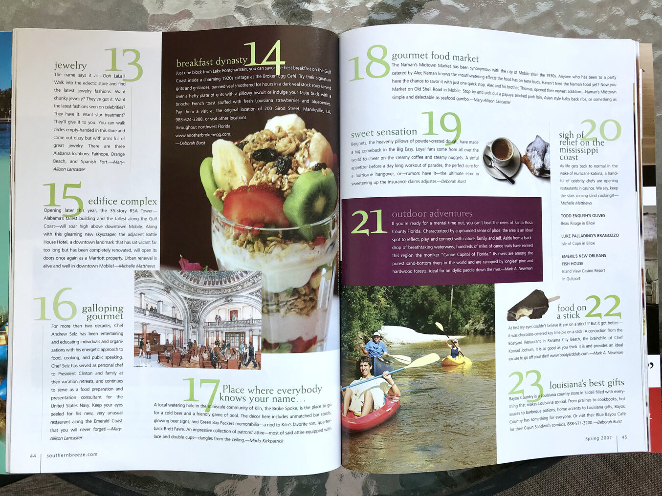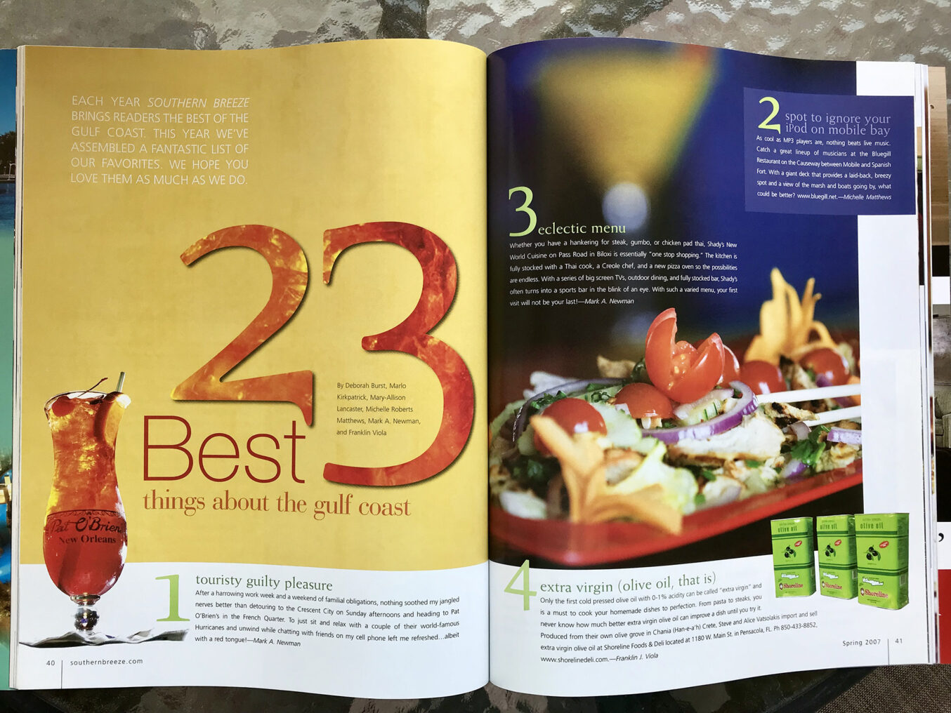 However, my hands-down most beloved series of “Best of” or “Hot List” feature layouts come from my years of art directing Southern Breeze magazine, a glossy quarterly publication that covered The Good Life on the Gulf Coast.