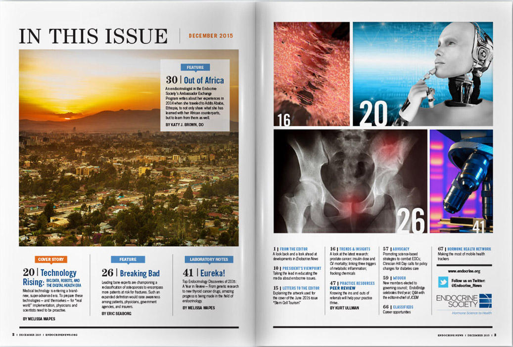 The Endocrine Society’s flagship magazine is a monthly publication called Endocrine News, a medical/lifestyle magazine that goes to all members. I was tasked with rebranding and redesigning the publication in 2015 and continue to serve as Art Director for the magazine to date, parsing complex medical information into a reader-friendly layout, improving audience engagement and retention.