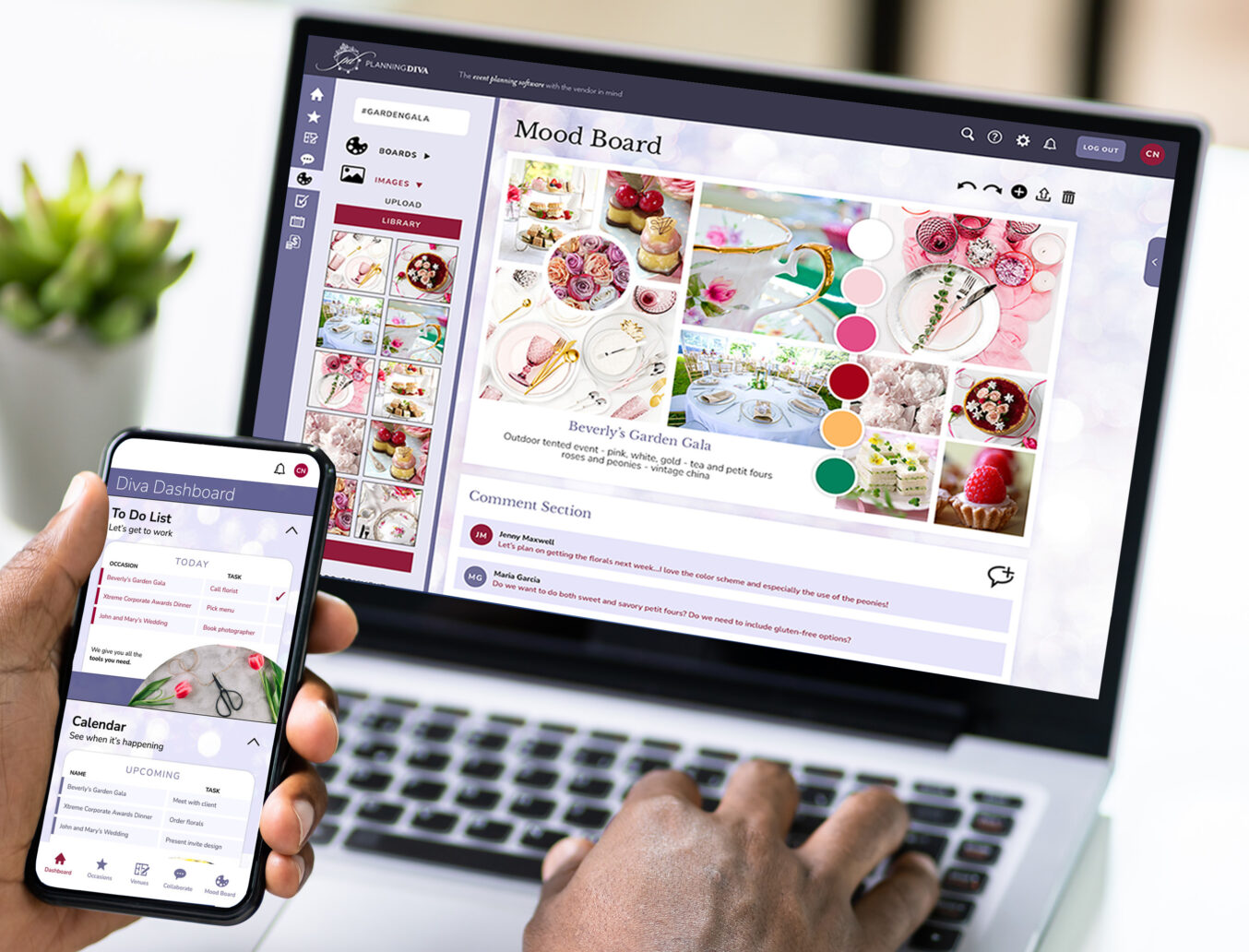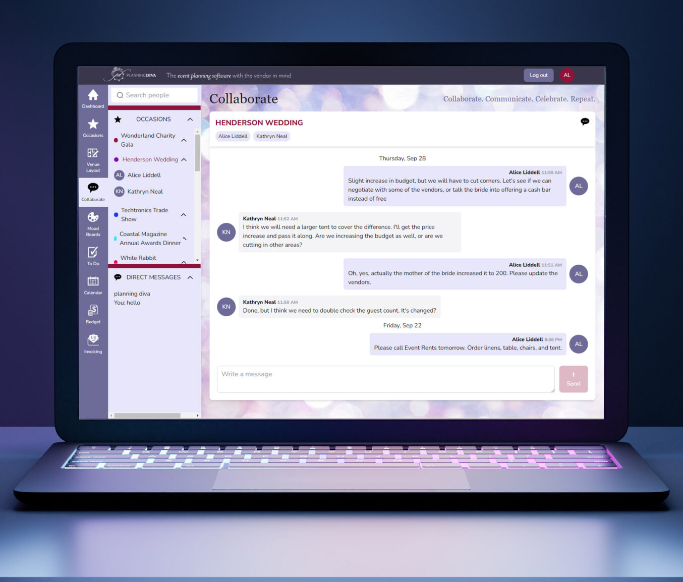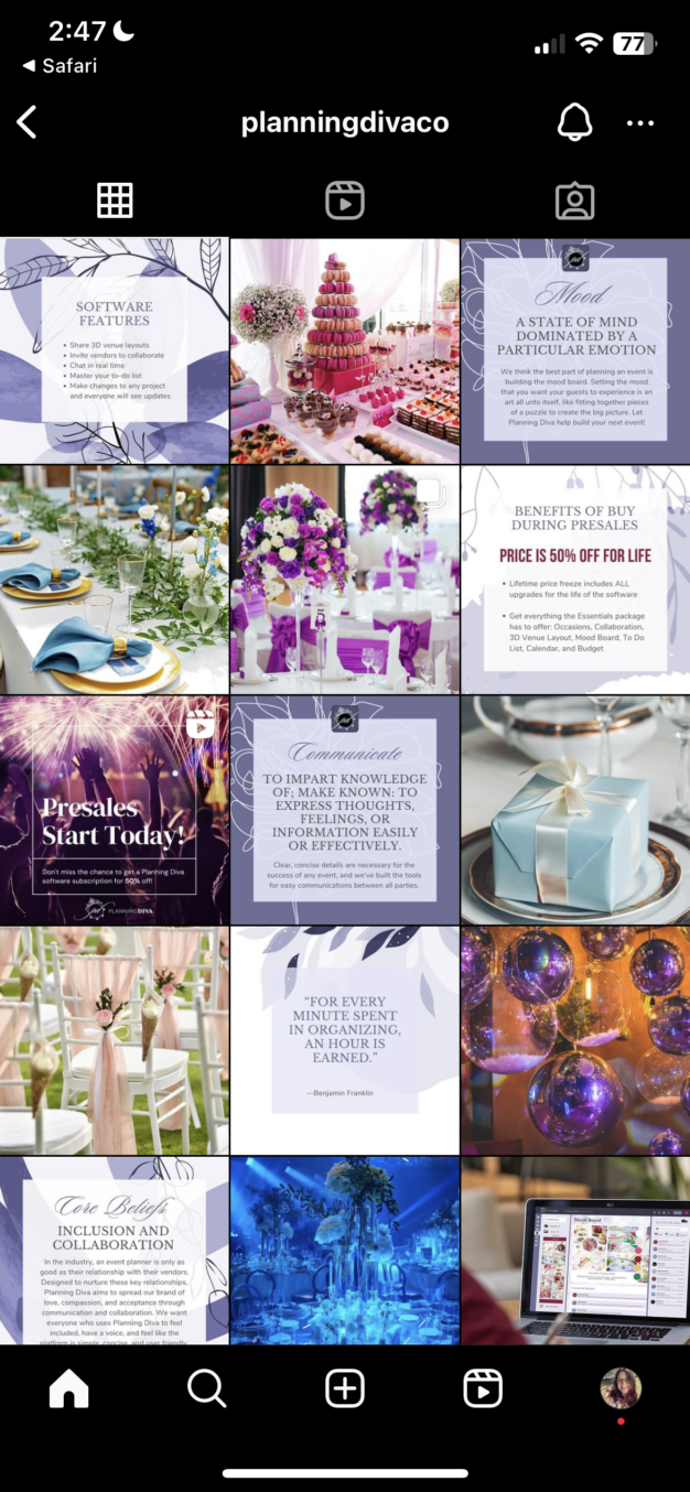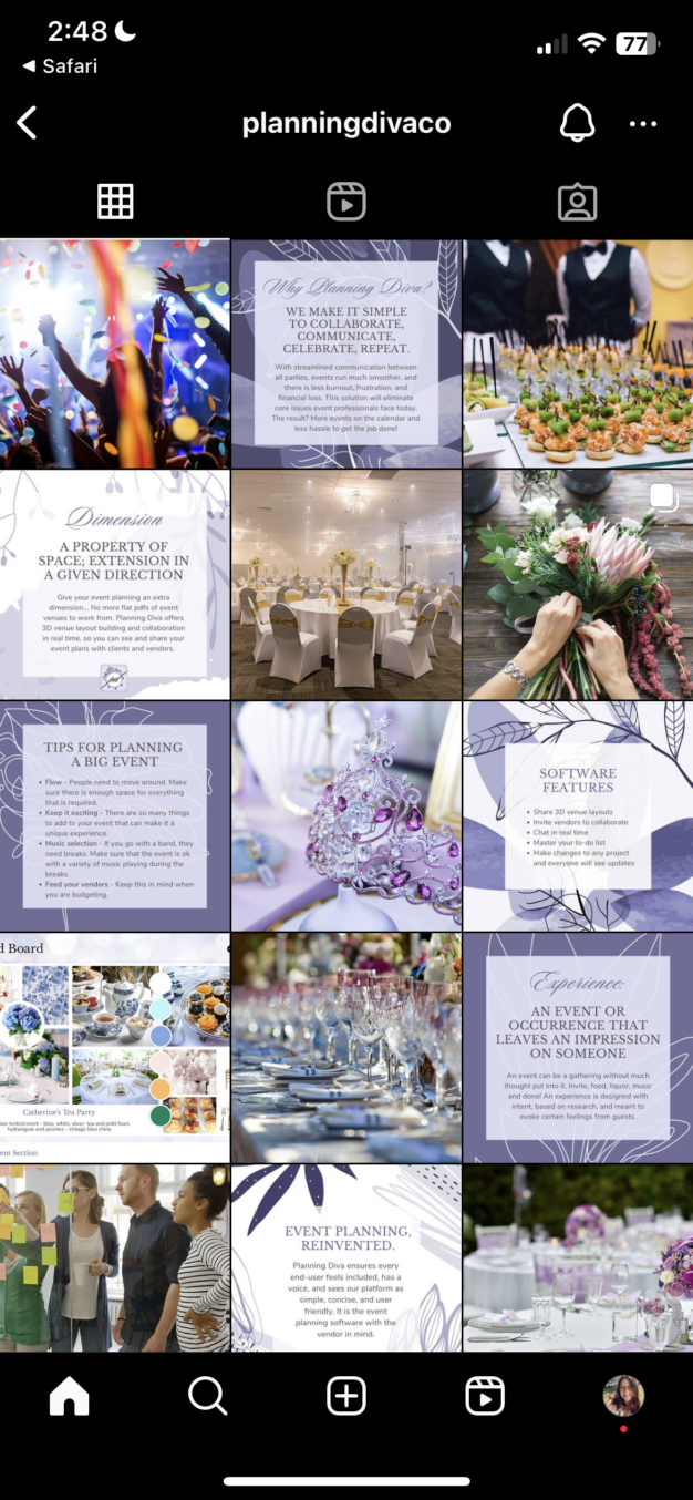 In January of 2023, I had the opportunity to join Planning Diva, a software-as-a-service startup company that would offer a start-to-finish management platform for event planners. The CEO and CTO founders hired me as their first employee, to serve as Creative Director and develop all the visuals for the up-and-coming company, from corporate branding and UX/UI design to investor pitch decks, social media messaging and sales event materials.